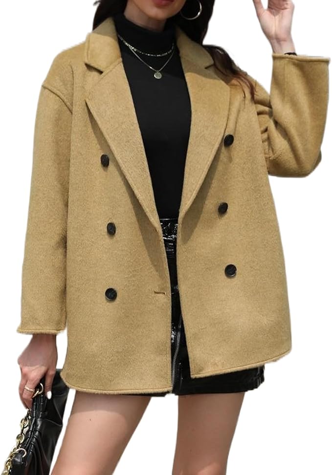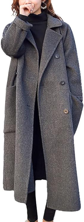 Women's Winter Wool Blend Coat Notch Lapel Double Breasted Peacoat Loose Warm Coat Mid-Long Outerwear
