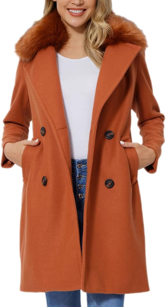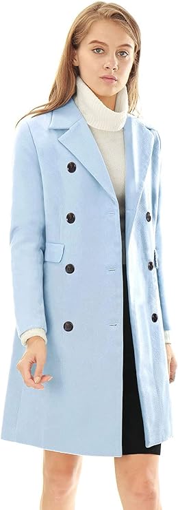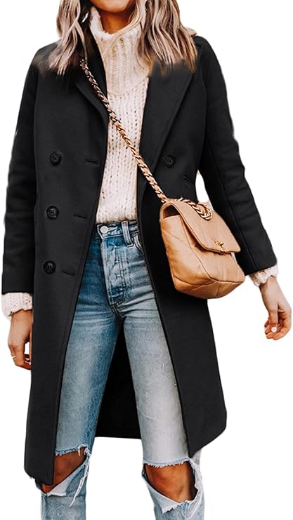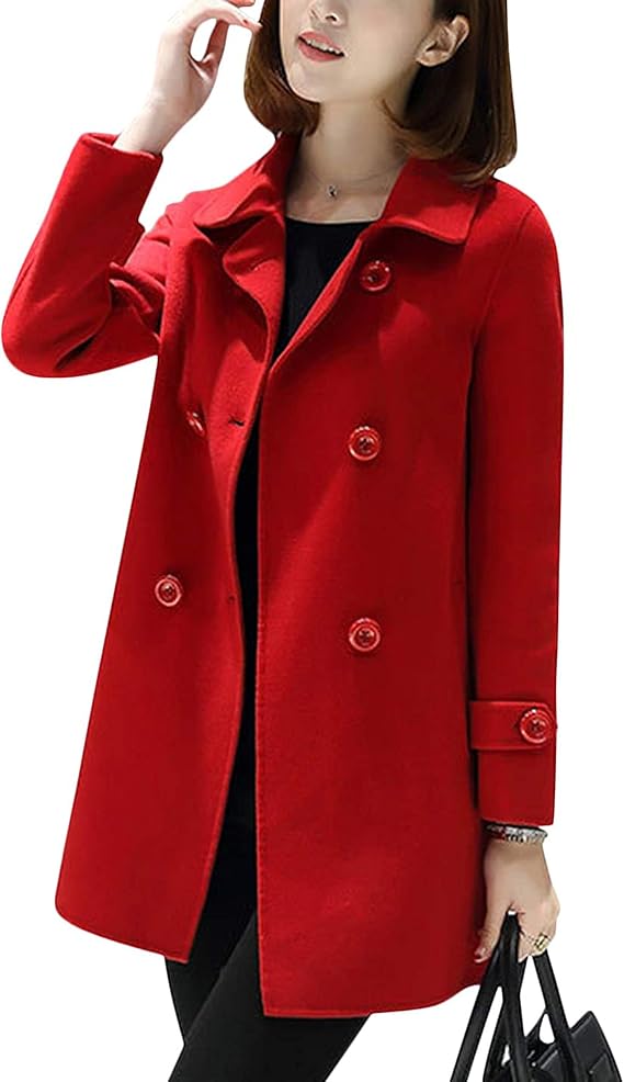 Womens Wool Coat Fall Winter Double Breasted Trench Coat Mid Length Peacoat Jackets 2024