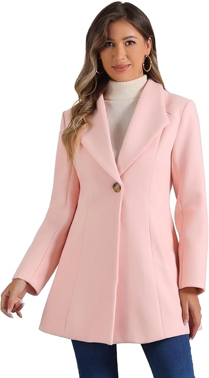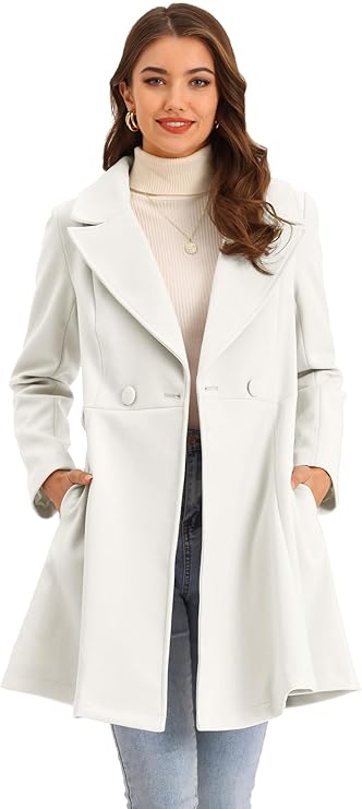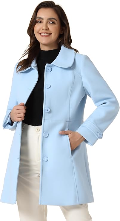 Women's 2024 Winter Coat Peter Pan Collar Notch Lapel Single Breasted Flared Mid-Long Peacoat