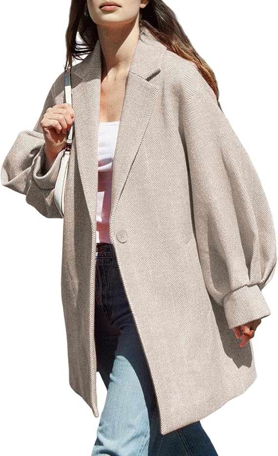Womens Winter Coats Trendy Wool Blend Overcoat Oversized Balloon Sleeves Outerwear with Pockets