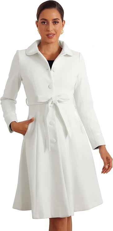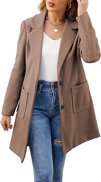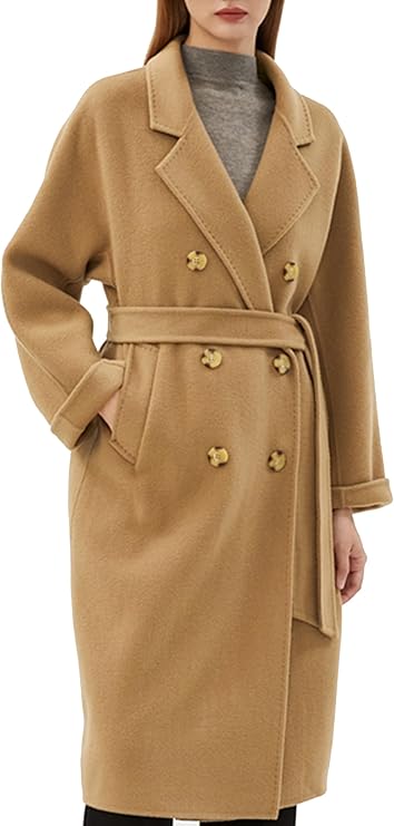Women's Wool Blend Coat with Pockets Mid-Long Winter Overcoat, Thick Wool & Pea Coats jacket with Belt