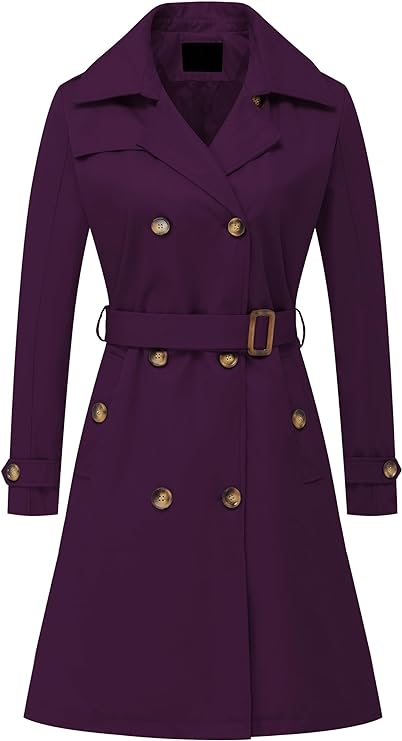 Womens Pea Coats Fall Long Trench Coat Double Breasted Button Down Lapel Belted Peacoat