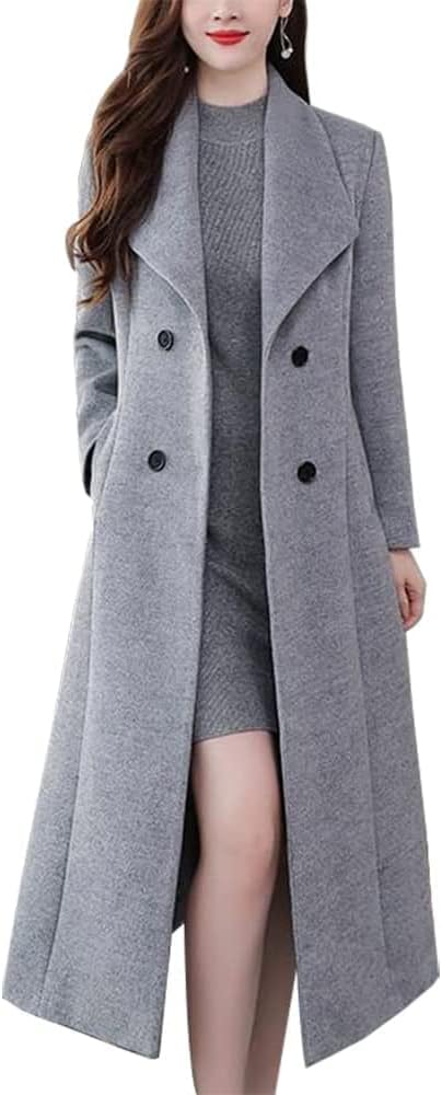 Women's Wool Blend Long Trench Coat Elegant Notched Lapel Coat Jacket Casual Fall Winter Overcoat with Belt