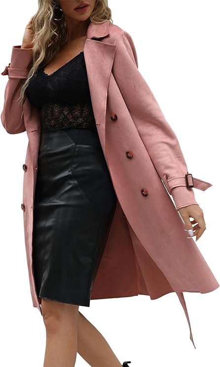 Womens Faux Suede Leather Jacket Fall and Winter Fashion Long Trench Coat, Lightweight Windbreaker