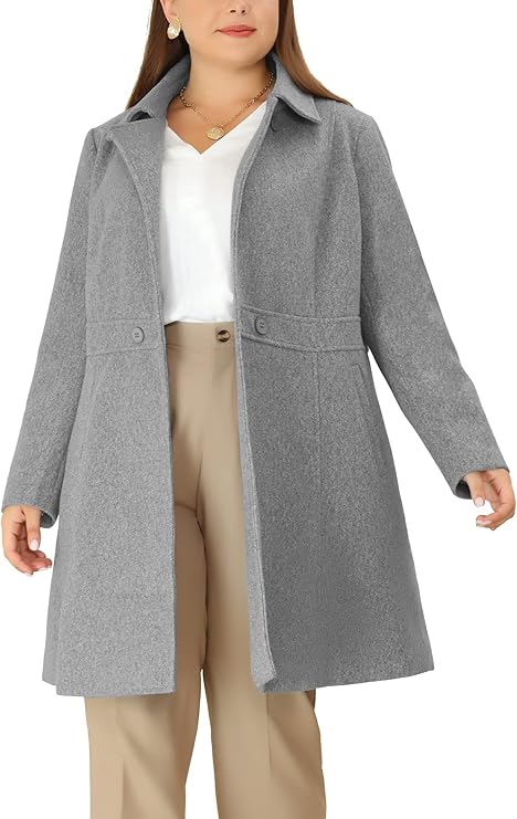 Plus Size Peacoat for Women Winter Notched Lapel Single Breasted Elegant Long Trench Coats Jacket