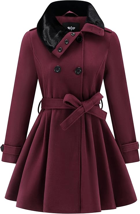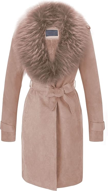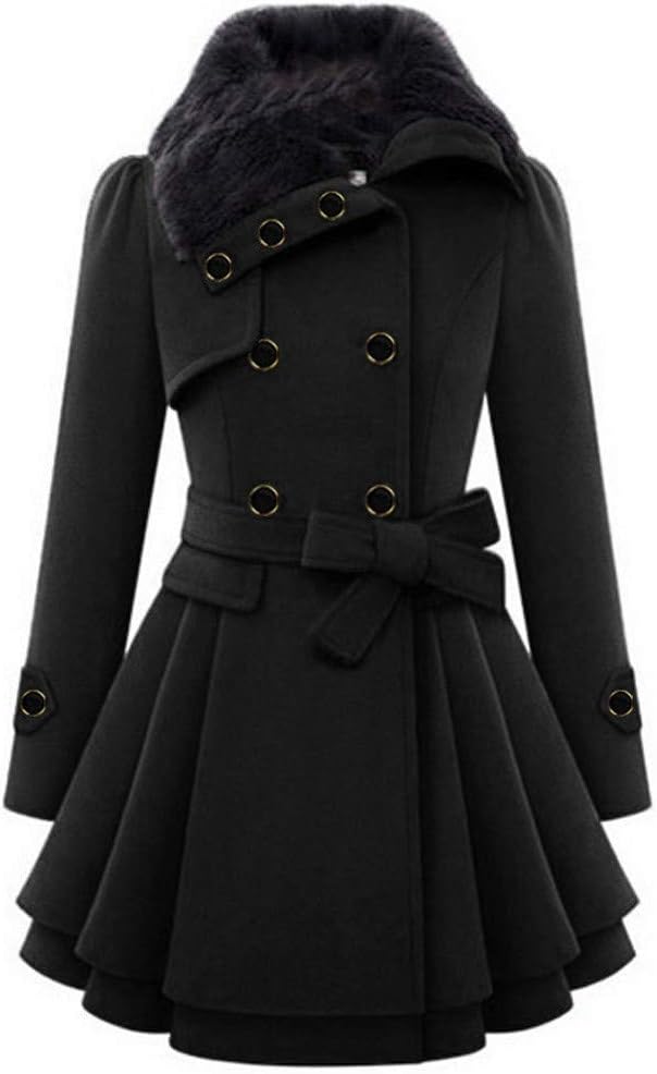 Women's Fashion Faux Fur Lapel Double-Breasted Thick Woolblend Trench Coat