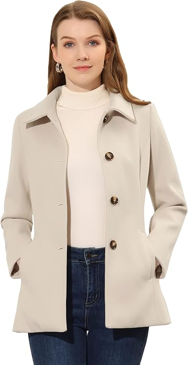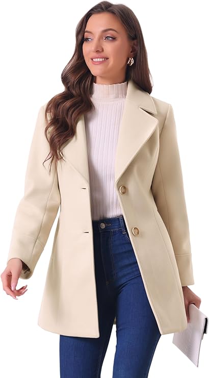Women's Winter Wool Coat Casual Notch Lapel Single-Breasted Peacoat