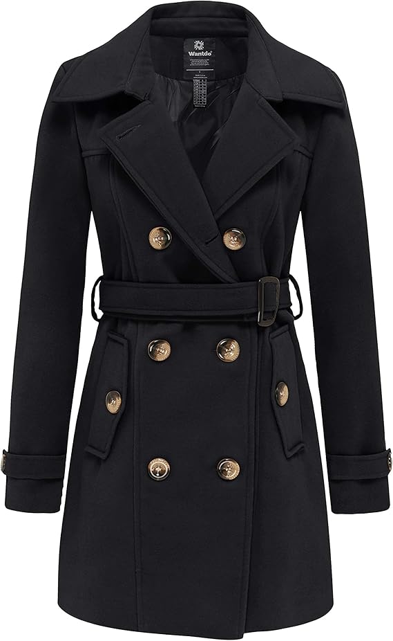 Women's Basic Wool Blend Pea Coats,Essential Double Breasted Midi Wool Blend Pea Coats Blazer Warm Winter Big Jackets