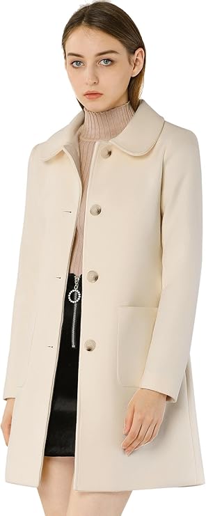 Women's Winter Single Breasted Peter Pan Collar Outwear Trench Coat