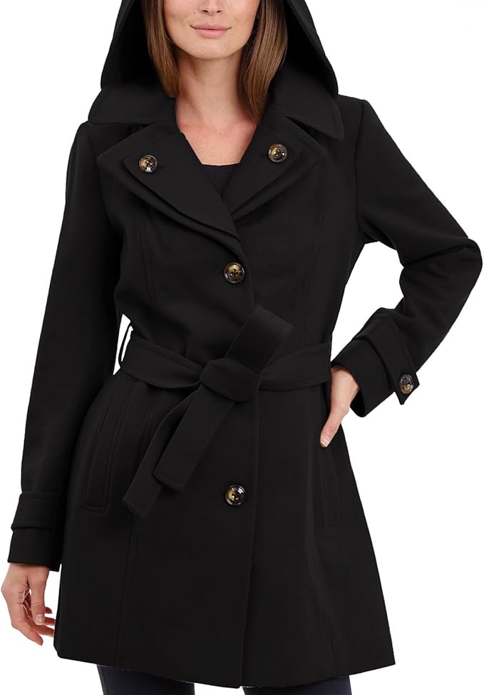 Women's Plus Size Trench Coat Double-Breasted Waterproof Lapel Overcoat Stylish Pea Coat with Detachable Hood
