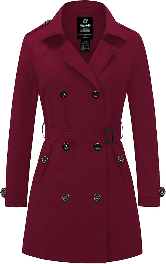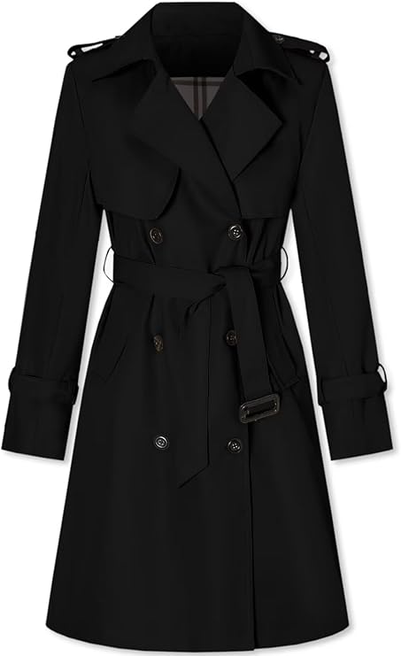 Women's Double Breasted Long Trench Coat Belted Notch Lapel Overcoat Windproof Classic Outerwear
