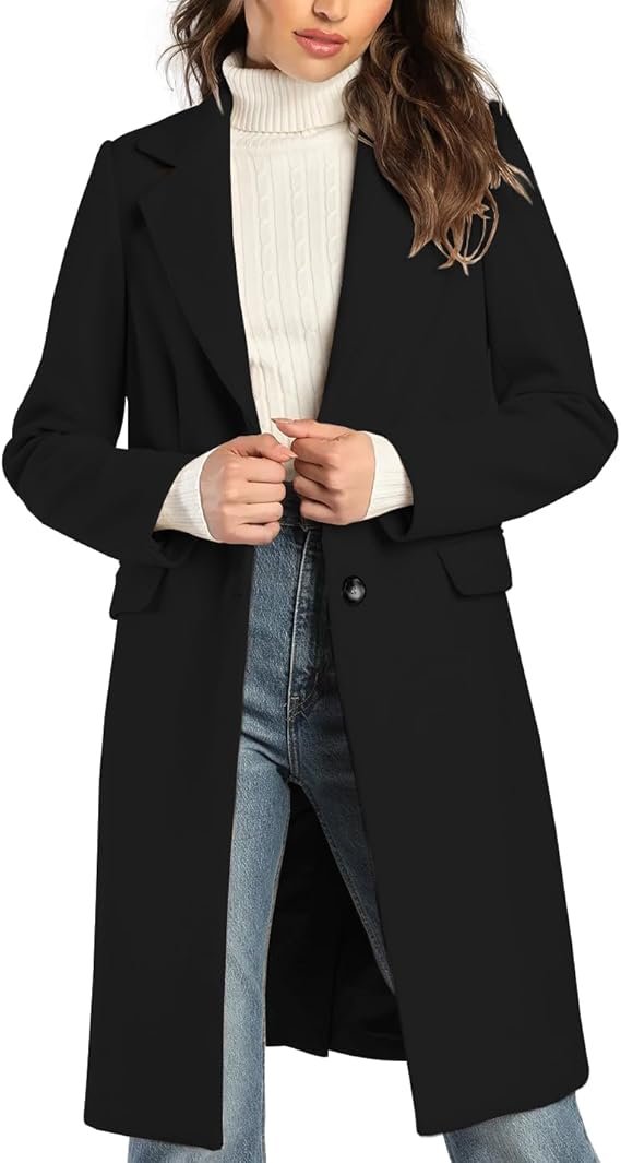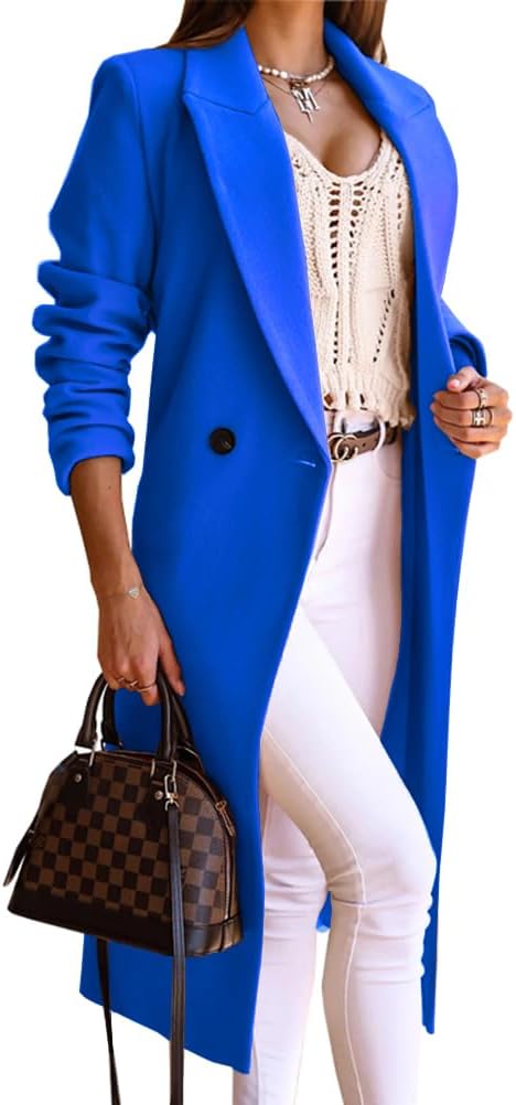 Long Wool Coats for Women Winter Fall Peacoat Trench Coat Double Breasted Blazer Jackets Overcoat