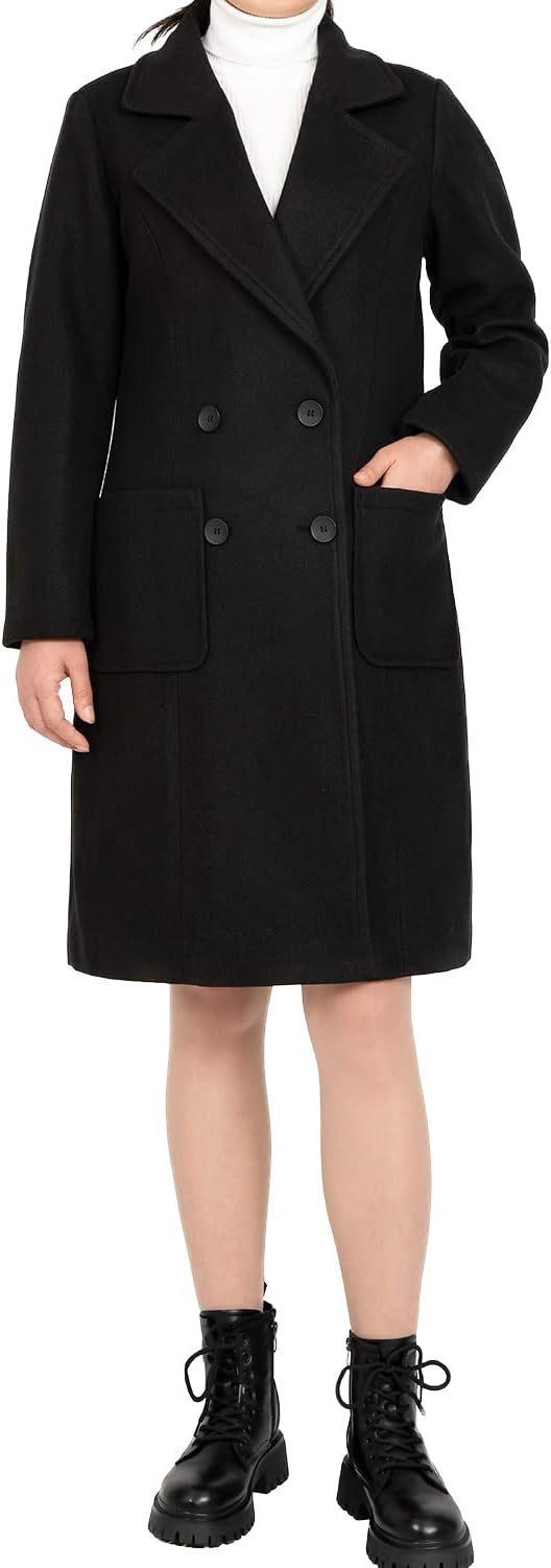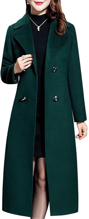 Womens Long Double Breasted Coats Lapel Collar Pea Coat Winter Slim Fit Jackets Trench Coat Outwear