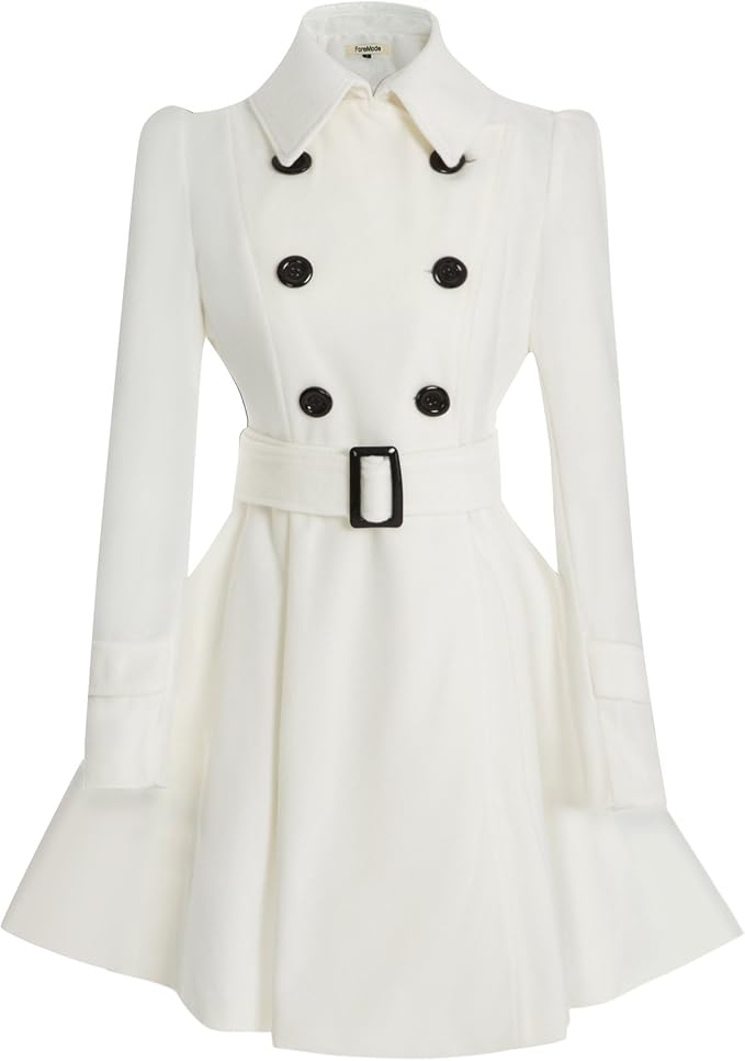 Women's Wool Blend Long Trench Coat Elegant Notched Lapel Coat Jacket Casual Fall Winter Overcoat with Belt