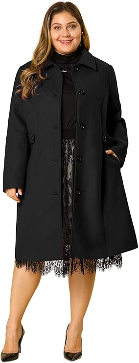 Women's Plus Size Single Breasted Belted Winter Long Coat