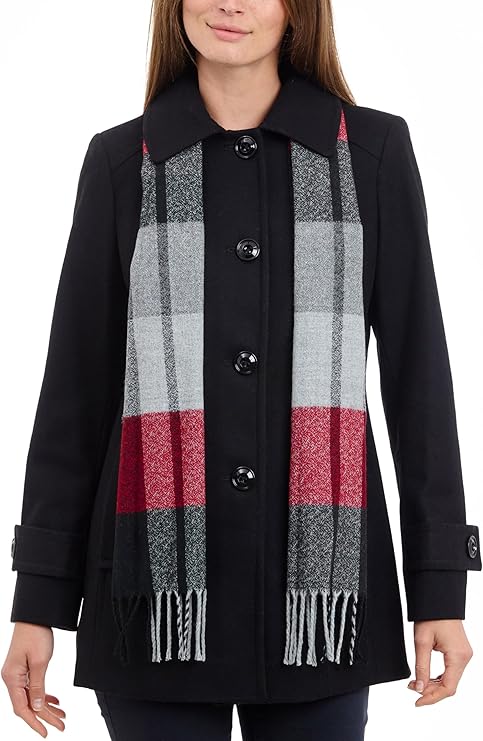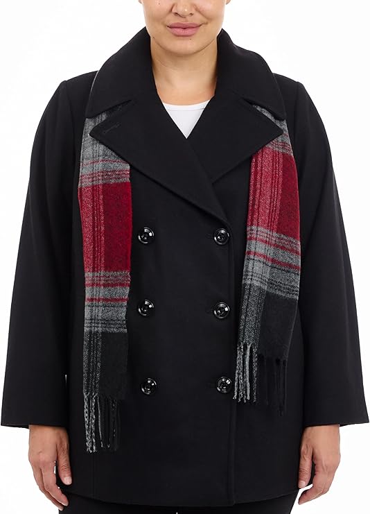 Women's Plus-Size Double Breasted Peacoat with Scarf