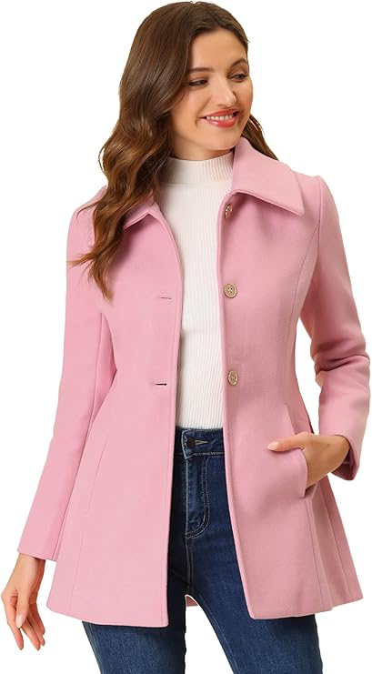 Women's 2024 Winter Coat Peter Pan Collar Notch Lapel Single Breasted Flared Mid-Long Peacoat