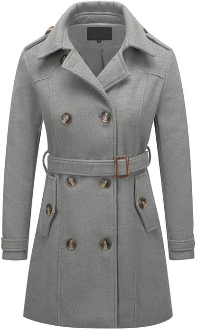Womens Pea Coat Double Breasted Wool Coat Long Winter Trench Coat with Belt