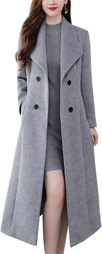 Womens Long Wool Coats Fall Winter Double Breasted Trench Coat Peacoat