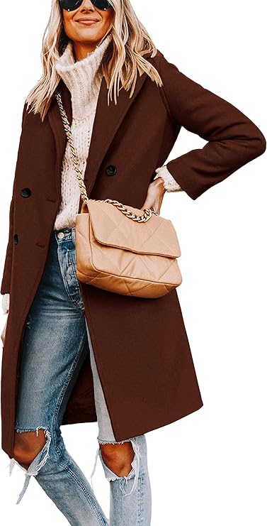 Women's 2024 Winter Double Breasted Wool Coat Notch Lapel Long Trench Jackets Pea Coats Overcoat
